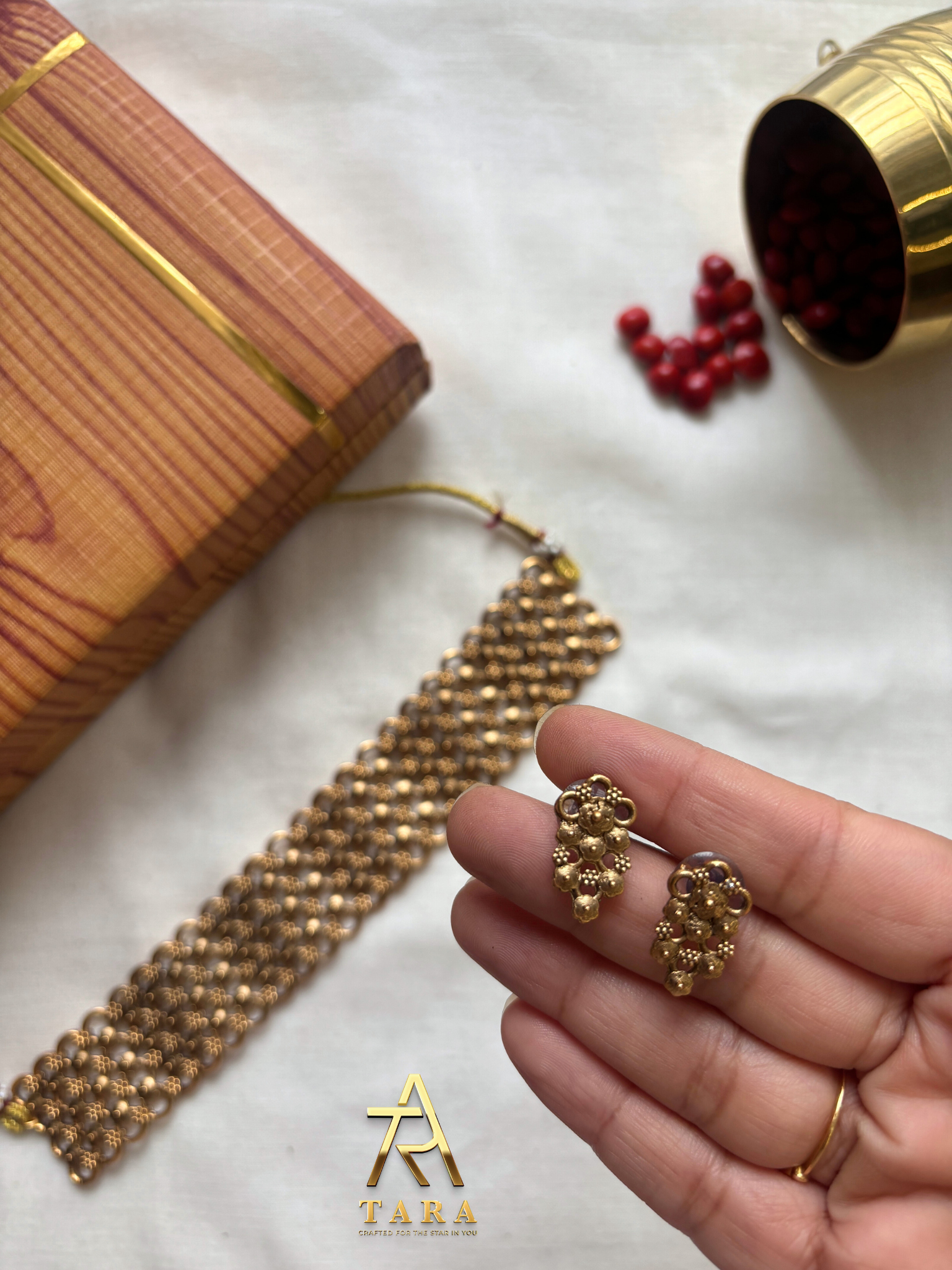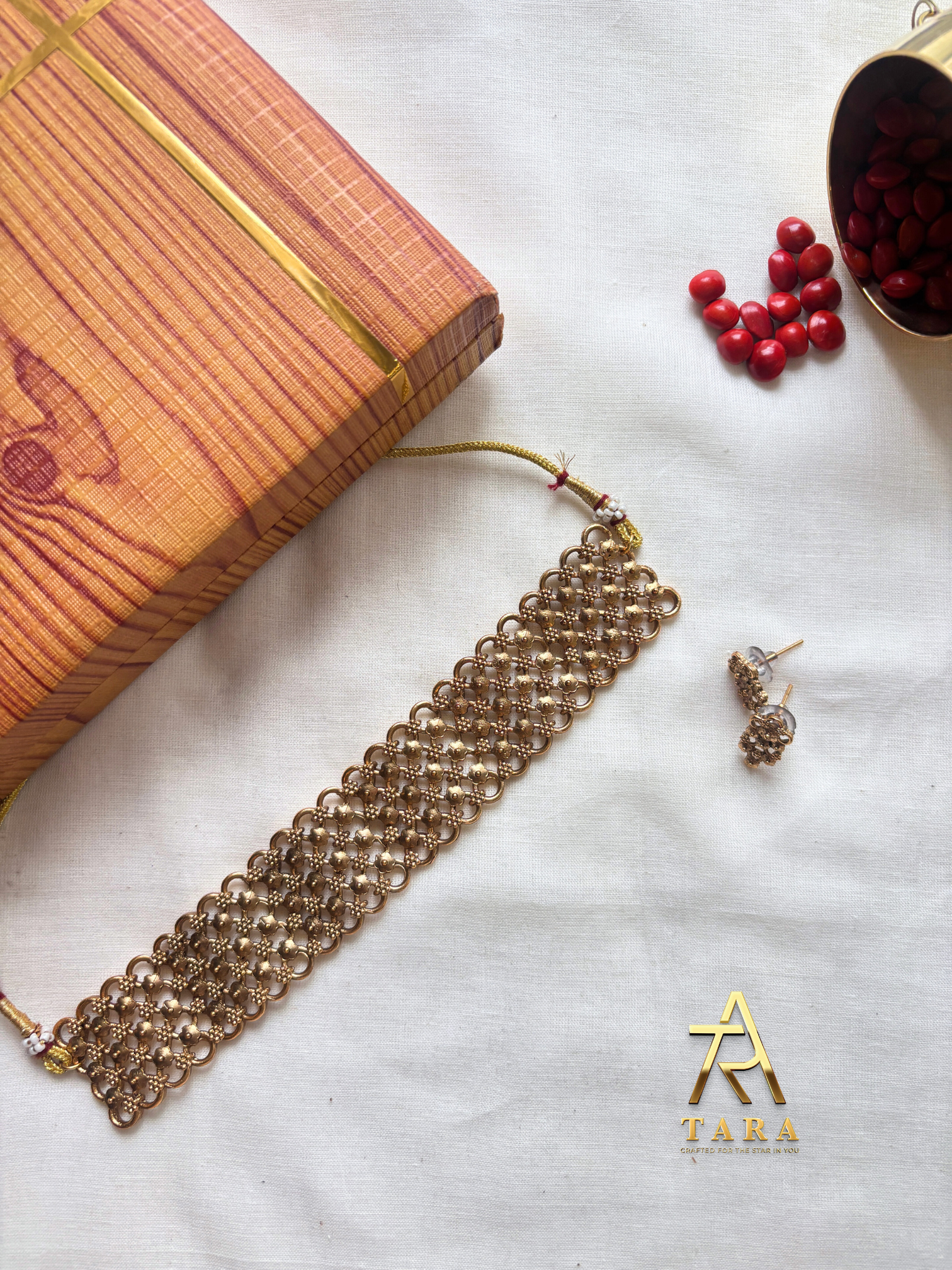 Antique finish Mesh Choker With Earrings - PRD1510